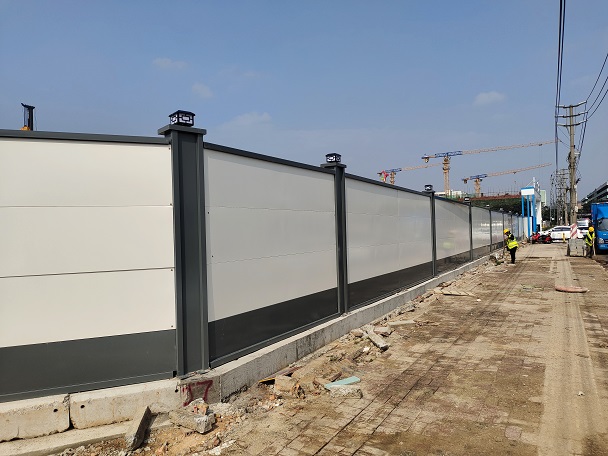 此項目旭東公司提供合作的產品是鋼結構圍擋A1款,提供890多米工地施工圍擋。