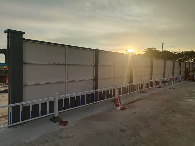 在此次的工程項目建設(shè)中選用了深圳旭東鋼構(gòu)圍擋廠家的鋼結(jié)構(gòu)A4款全鋼型材制作的工地圍擋來進(jìn)行對施工現(xiàn)場圍蔽,我們的工地圍擋主要結(jié)構(gòu)牢固,只要制作材料是鋼結(jié)構(gòu)型材,板材表面烤漆處理,外形美觀,不生銹、不變色、長年依然靚麗;卡槽安裝模式,減少大量螺絲的安裝繁瑣,360°萬能轉(zhuǎn)角,安裝便捷靈活。廣泛應(yīng)用于市政、工地、城市、建筑、臨時現(xiàn)場、道路、公路等施工圍擋現(xiàn)場。對廣東經(jīng)常會發(fā)生臺風(fēng)惡劣這樣的環(huán)境下,也依舊能夠抵抗臺風(fēng),不會受其影響。