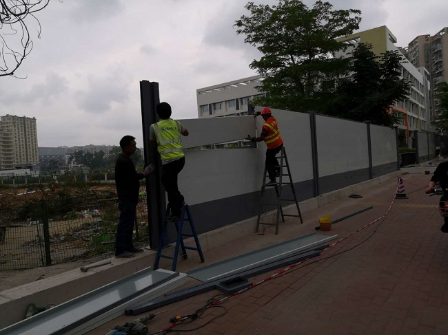 當城市在進行工程建設時會對一些道路、建筑等進行施工改造,而施工前會設立施工圍擋把施工場所圍起來,一方面呢能夠有效的防止施工沙石、塵土亂飛,影響周圍居民的生活;另一方面呢能夠維護城市市容市貌,施工圍擋可以讓施工以外的人看不到施工內部的狀況,外面也不會被施工的雜亂環境所 影響。