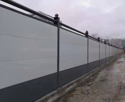 上下橫梁為50*50方通,圓梁改為76鋼管,面板為鍍鋅扣板2980*470,灰色烤漆立柱高度為2.25米,加上預制基礎高度30cm,達到交委要求圍擋的整體高度、地面以上2.5m的鋼結構圍擋。
