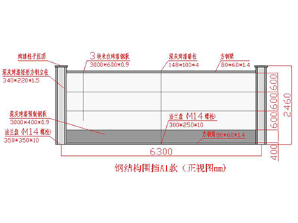 鋼結(jié)構(gòu)圍擋A1款,是根據(jù)深圳市住建局標(biāo)準(zhǔn)要求設(shè)計(jì)制作,一般情況應(yīng)用于半年(6個月)以上的工程。采用框架式結(jié)構(gòu),且每塊面板都有兩條橫向方通龍骨,兩側(cè)用自制角鐵做豎向龍骨,標(biāo)準(zhǔn)化拼裝。圍擋全部采用金屬材料,表面噴涂烤漆處理,經(jīng)久耐用、不易褪色、耐腐蝕,可循環(huán)使用5年左右,降低成本。